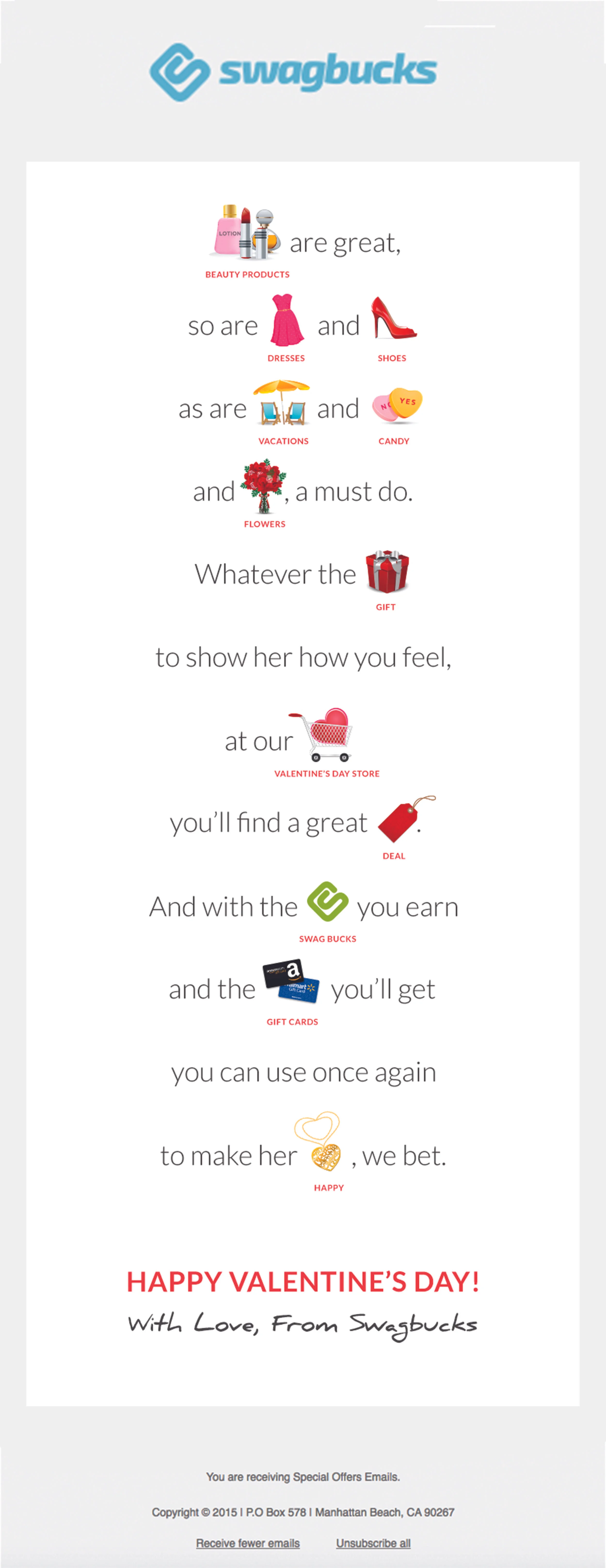 Swagbucks needed to direct more traffic to its blog. So I created a weekly word game called SWAGANIGANS which not only boosted blog traffic/participation by 210%, but also increased traffic to other Swagbucks channels as well as partner sites. As a result, this contest ended up becoming a new source of revenue for the sales team.